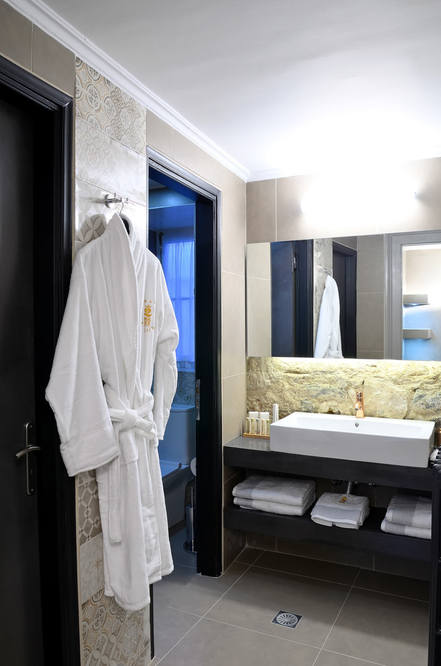Το επιβλητικό μπάνιο 28m², είναι ανοιχτού τύπου με τζάμι. Θα το απολαύσετε πραγματικά!